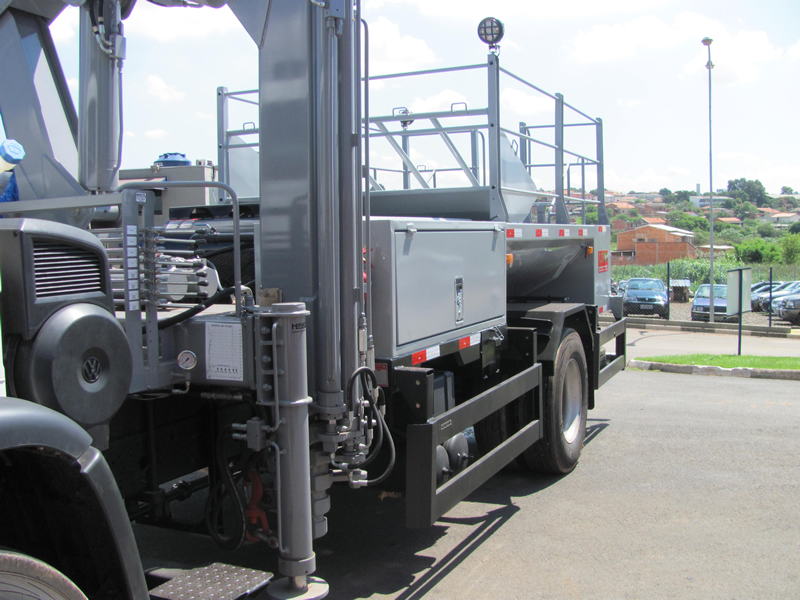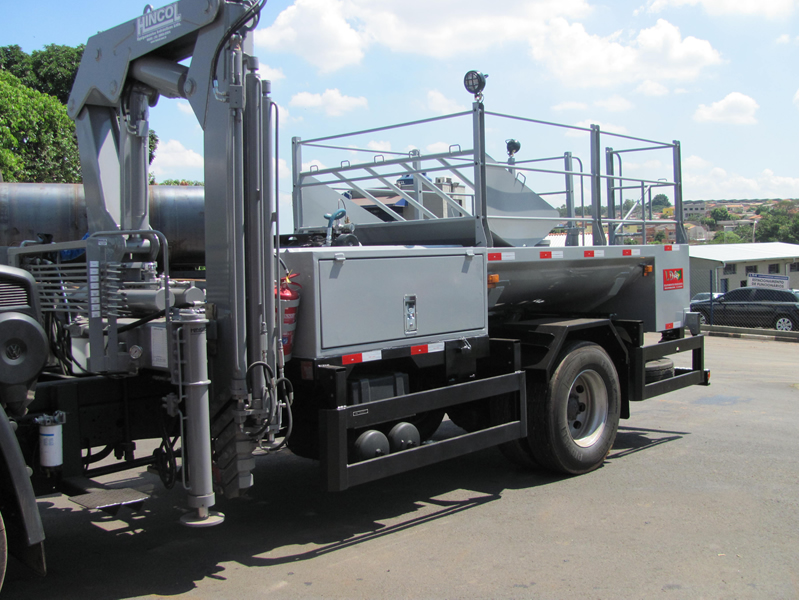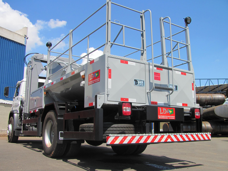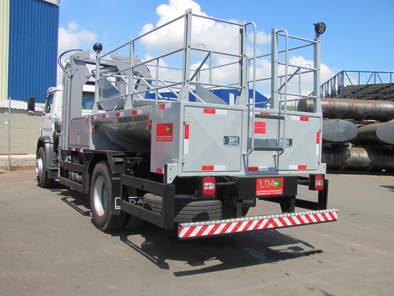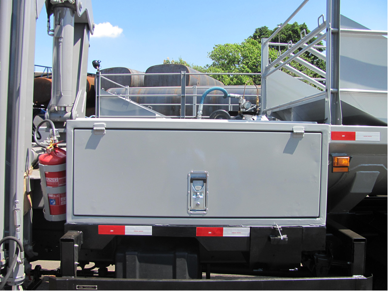 CARROCERIAMetálica, comprimento: 5,30 M x 2,2 M (LxA); Componentes/acessórios: armários laterais e traseiro, bomba d'água centrifuga 100L/M³, carretel mangueira, reservatório d’água 2000 L, calibrador pneus digitais. PLATAFORMA INTERMEDIÁRIAEm perfis e chapas de aço carbono, comprimento de 1.500mm e largura de 2.520mm com piso em chapa anti-derrapante. Armário medindo 1.500mm x 635mm x 700mm (LxAxP), 2 (duas) portas laterais, fechaduras e vedação para alojamento dos carretéis e do calibrador, posicionado no lado esquerdo. TANQUECapacidade útil 2000 L, formato pentagonal, costado superior com plataforma de operação, tampos e quebra-ondas planos, construído em aço naval, soldas por arco elétrico (MIG). Compartimentos separados por quebra-ondas no sentido transversal, interligados para garantir o abastecimento contínuo da bomba. Chassi auxiliar sob berços de apoios transversais, construídos em perfilados de aço carbono dobrados a frio com espessura de 1/4 Pol. COMPARTIMENTO TRASEIROEm aço carbono, com volume aproximado de 1,00m3 posicionado após o tanque d´água, duas portas laterais, fechaduras e vedação contra pó e água, dotado de escada traseira com pega-mãos tubulares e degraus antiderrapantes. CONJUNTO DE ACIONAMENTOMecânico pelo PTO/TDF do câmbio do veículo com cardans automotivos em aço, mancal monobloco com esticador, bases e suportes para fixação, polias e correias. COMPRESSORCompressor de ar de 30PCM, pressão de 175 PSI, com reservatório pulmão auxiliar de 200 litros, com serviço contínuo, filtro regulador, painel de controle e manômetro, carretel retrátil com retração por mola com mangueira DE ¼ Pol x 15 M e bicos para limpeza e enchimento de pneus. ABASTECEDOR DE ÁGUABomba centrífuga 100L/min à 50 PSI (35 MCA) de vedação por selo mecânico, carretel retrátil com retração por mola com mangueira de ½ Pol x 15 M com engate rápido. SUPORTE HORIZONTALAcomoda : 01 Pneu agrícola 26/28/30/34; 05 Pneus caminhões 1000x20 ou 1100x22; 01 Pneu L 15 – Balão; 01 Pneu 7.50 x 16; 01 Calibrador de pneus digital; 01 torno de bancada (morsa fixa) Nº 8; 02 Faróis tipo spot 6” de 55 Watts. COMPONENTES DO EQUIPAMENTO .................................................................................................................. |
