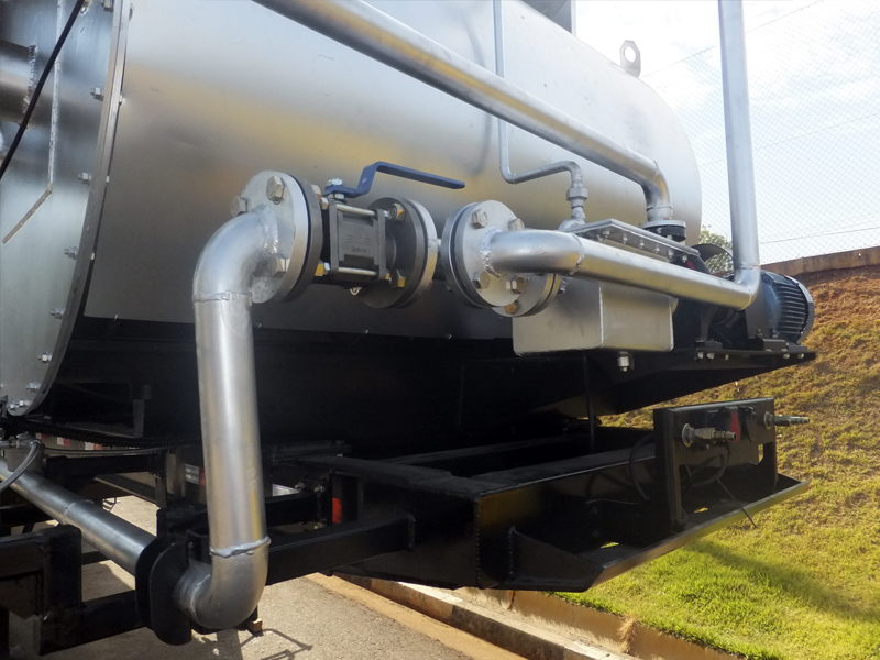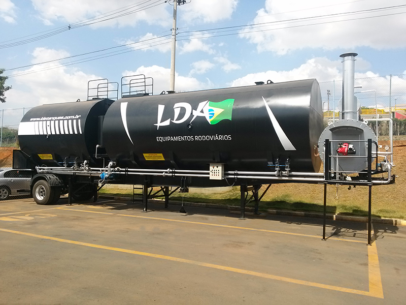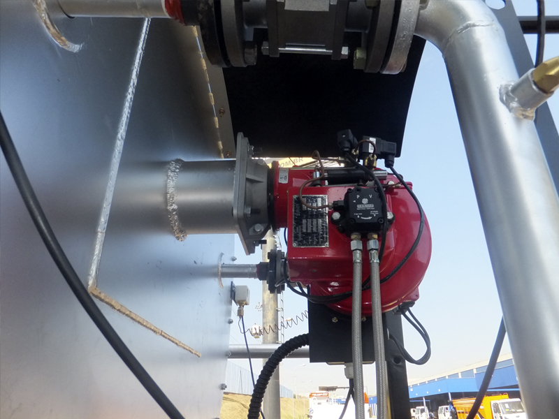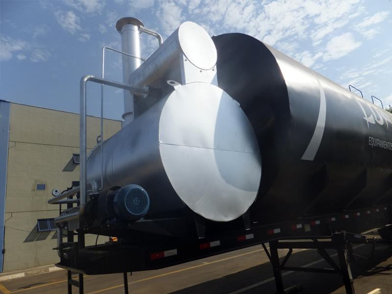 ARMAZENAGEMMóvel com capacidade de até 90 toneladas independentes, com máxima economia de energia térmica gerada pelo Aquecedor de Fluído Térmico. Móvel com capacidade de até 90 toneladas, montada sobre chassis de 01 ou 02 eixos em função do volume total, em tanques independentes. Tanques divididos em compartimentos de 30 toneladas, para armazenagem do asfalto de modo a aquecer com maior economia, podendo-se aquecer separadamente os compartimentos ou todos simultaneamente, inclusive o tanque de combustível, devido ao aquecedor de fluído térmico com grande capacidade geradora de calor. BOMBA DE ASFALTOBomba de engrenagens de deslocamento positivo, acionada por inversor de frequencia controlada pelo software, injetando o teor exato de asfalto na mistura, com camara de aquecimento por óleo térmico com capacidade de deslocamento de 6000 l/h até 12.000 l/h. BOMBA DE ÓLEOCentrifuga, com sistema de vedação por selo mecânico ou gaxeta, sem sistema de refrigeração com capacidade mínima de 35m³ acionada por motor elétrico de 3500 RPM. AQUECEDOR DE ÓLEO TÉRMICOÉ um equipamento para aquecimento de fluídos térmicos (Óleos) para uso industrial desenvolvido e projetado para gerar maoior quantidade de energia com um mínimo de consumo de combustível atingindo um alto rendimento térmico e nível de performace, com capacidade térmica geradora de até 500000 Kcal/h. Isolada termicamente, por lã de vidro e internamente por tijolos refratários, o corpo do aquecedor gera uma circulação de gases quentes com duplo passe em sistema contra fluxo, aumentando ainda mais o rendimento térmico do sistema. QUEIMADORDo tipo automático gerenciado por um controlador de temperatura, que desliga a chama automaticamente quando o óleo térmico na saída do aquecedor atinge a temperatura programada. O queimador é religado após atingir o diferencial de temperatura previamente programado, além de bloquear o sistema por excesso de temperatura do óleo térmico evitando seu "craqueamento" causado por exposição a temperaturas elevadas. TIRAGEMA tiragem dos gases é feita por pressão positiva gerada pelo ventilador do queimador, auxiliada pela tiragem natural da chaminé. SERPENTINASistema de transmissão de calor por tubos em serpentina aquecidos por óleo térmico, de 1.1/2"-SCH-40 para alto rendimento térmico, aquecendo num mínimo tempo possível. TANQUE COMBUSTÍVELCom capacidades de até 30 toneladas, dotado de serpentina para aquecimento por óleo térmico, com isolamento total do corpo do tanque garantindo a manutenção de temperatura e economia de combustível no aquecedor de óleo térmico. ISOLAMENTO TÉRMICOTanques de Asfalto e Combustível com isolamento térmico total do corpo em lã de vidro de 2". AGITADORESSistema de agitadores, automáticos, que ligam quando a asfalto atinge a temperatura programada, para uso de asfaltos modificados com políetros, garantindo perfeita homogenização do asfalto, evitando a sedimentação e reduzindo o tempo de aquecimento dos produtos, com rotação dentro da norma, evitando a oxidação do asfalto. COMPONENTES DO EQUIPAMENTO .................................................................................................................. |