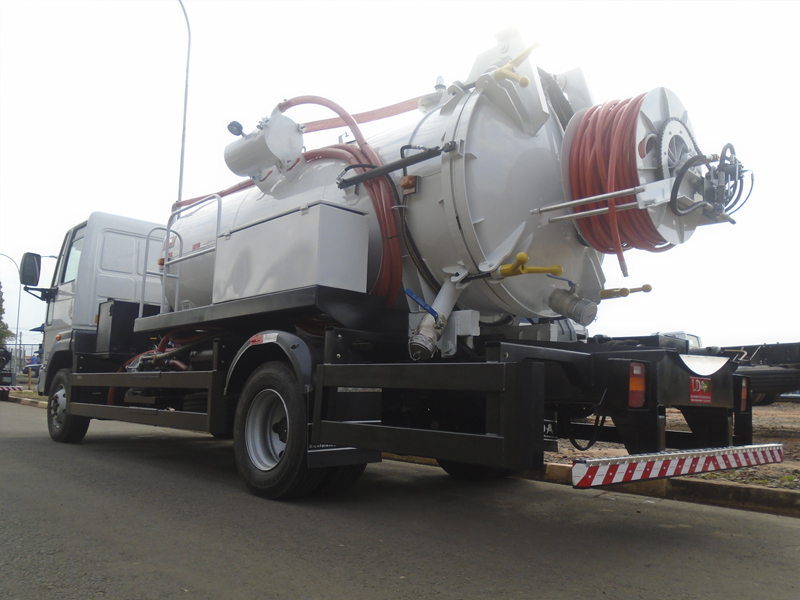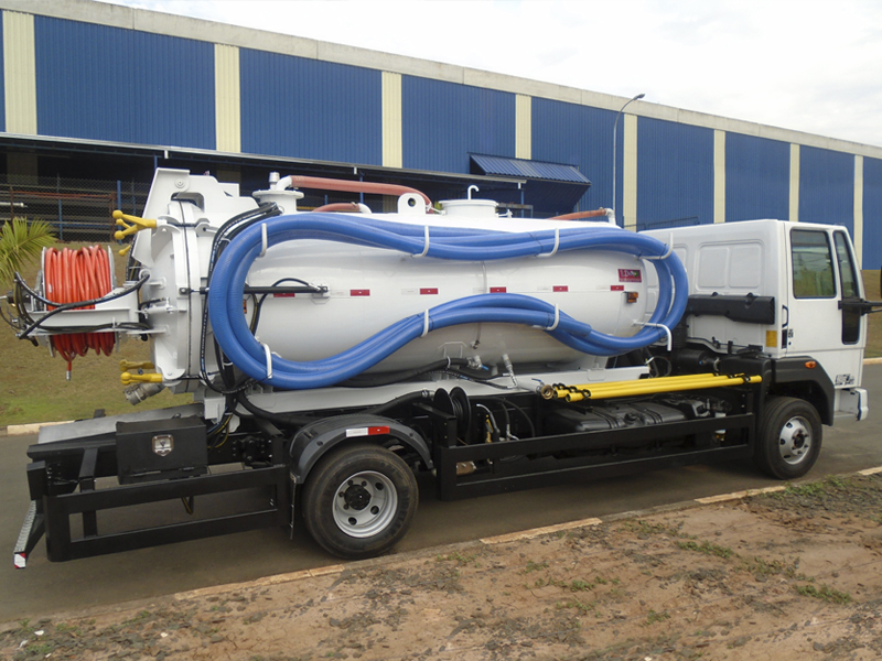 TANQUETanque construído em formato eliptico, fabricado em chapas de aço carbono SAE1020 de 3,75 mm de espessura, providos de quebra-ondas internos equidistantes, tampos confeccionados em chapa de aço carbono SAE1020 de 3,75 mm de espessura. Escada de acesso lateral para a parte superior. BOCABoca de visita / abastecimento Ø 500 mm, com respiro tipo cabo de guarda-chuva na parte superior. Bocal inferior para abastecimento por hidrante, dotado de registro de esfera Ø 2 ½ Pol com engate storz. VISORVisor de nível tipo coluna LINHA DE ALIMENTAÇÃOLinha de alimentação da bomba com válvula tipo esfera de acionamento manual e filtro Y de 2 Pol. BOMBACorpo da bomba em ferro cinzento. Cabeçote em aço inox CF8 ou em aço nodular com revestimento em níquel químico. Pistões em aço nodular revestidos com níquel químico Virabrequim em aço liga beneficiado e nitretado. Bielas em aço nodular com bronzinas antifricção. Êmbolos em aço inox. Gaxetas de pressão especiais. Válvulas em aço inox e bronze. BOMBA DE ACIONAMENTOAtravés de caixa de transferência com saída especial dedicada para alta potência e comandos de acionamento na cabine do caminhão. Inclui a montagem da caixa de transferência e readequação do cardan do caminhão SISTEMA HIDRÁULICOComposto por bomba de engrenagens e motor hidráulico de engrenagens para acionamento do carretel principal, com comandos que permitam duplo sentido de giro do motor e controle de velocidade de acionamento. Tomada de força para acionamento do sistema hidráulico. PAINEL DE COMANDOManômetro indicador de pressão do óleo do sistema hidráulico; Manômetro indicador de pressão de água da bomba de alta pressão; Horímetro indicador de funcionamento do equipamento; Interruptor para os faróis auxiliares (incluso com o opcional); Interruptor para o sinalizador rotativo (incluso com o opcional); Interruptor de luz do painel; Comando hidráulico do Carretel Principal; Tomada 12 Vcc corrente contínua para pendente (incluso com o opcional). ACESSÓRIOS02 bocais para desobstrução, com jatos propulsores traseiros 35º e um frontal. 02 bocais para gordura, com jatos propulsores 35º tangenciais. Conjunto de ferramentas adequadas para troca e substituição dos bocais. Tratamento interno com revestimento epóxi (adequado para transporte de água). Acabamento externo em pintura PU na cor branca. Para-choques conforme resolução Contran. Protetores laterais conforme resolução Contran. Faixas refletivas conforme resolução Contran. COMPONENTES DO EQUIPAMENTO .................................................................................................................. |