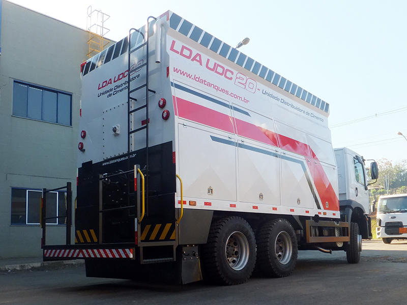 SILOcom capacidade de até 20m³ reforço estrutural internos com viga U, com 3 tampas superiores de abastecimentos para evitar o efeito pirâmide, proporcionando abastecimento completo do reservatório. Agitador e rosca sem fim, proteção da rosca construída em aço carbono 4,75mm, compartimento dosador, composto de rosca sem fim direita esquerda, plataforma traseira, construída em aço carbono, com proteção tipo guarda corpo, para segurança do operador. ROSCA DO SILOConstruído em aço carbono, espessura ¼” e tubo schedule 80 de 3” acionada por 2 motores hidráulicos com opção de reversão. COMPARTIMENTO DE DISTRIBUIÇÃOConstruído em chapa de aço carbono SAE 1020 4.75 mm e rosca transportadora construída em chapa aço carbono de ¼” acionada por motor hidráulico com opção de reversão. MISTURADORConstruído com tubo de 2” e palhetas de aço carbono, acionada por motor hidráulico, para auxiliar a vazão do material, evitando acúmulos de ar e prejudicando o desempenho da aplicação. VIBRADORDuas unidades acionada por motores hidráulicos, um em cada lado do silo, auxiliando o misturador na tarefa de evitar falhas na distribuição do produto. SISTEMA HIDRÁULICOComposto de bomba de pistão modelo EATON acionada por tomada de força acoplada ao veículo, reservatório de óleo hidráulico em aço carbono para até 160 L de óleo, sistema integrado para filtragem completa do óleo através de elemento blindado (tipo tela de aço) componentes hidráulicos, conjunto de comandos composto por unidades de acionamento (bloco + solenoides) individuais que além de maior facilidade nas manutenções (preventiva e corretiva) também permite que se faça qualquer procedimento sem a desmontagem do conjunto completo evitando a paralisação integral do equipamento bem como o desperdício de grande quantidade de lubrificante, conjunto de mangueiras especiais para alta pressão com exclusivo sistema de vedação interna que permite a troca das mesma preservando e viabilizando a reutilização das conexões originais. PAINEL GERALPainel geral de comando operacional equipado com botoeiras de três posições protegido por “máscara” em acrílico de alta resistência a impactos e umidade, com indicadores de funções e piloto de direção com intertravamento de acionamento, chave geral, caixa metálica especial para o alojamento e fixação das válvulas pilotadas bem como blocos hidráulicos e fiação elétrica, manômetros de pressão e temperatura hidráulica, horímetro(parcial e acumulado), lâmpadas de indicação de funcionamento e anomalias no sistema. ILUMINAÇÃO EXTERNAIluminação externa por lanternas instaladas na dianteira e traseira do equipamento em conformidade a legislação em vigor (DENATRAN). COMPONENTES DO EQUIPAMENTO .................................................................................................................. |