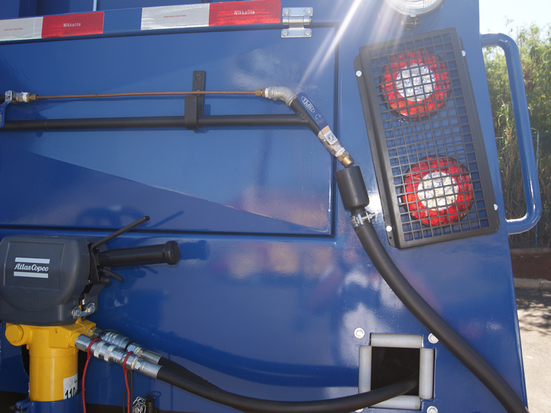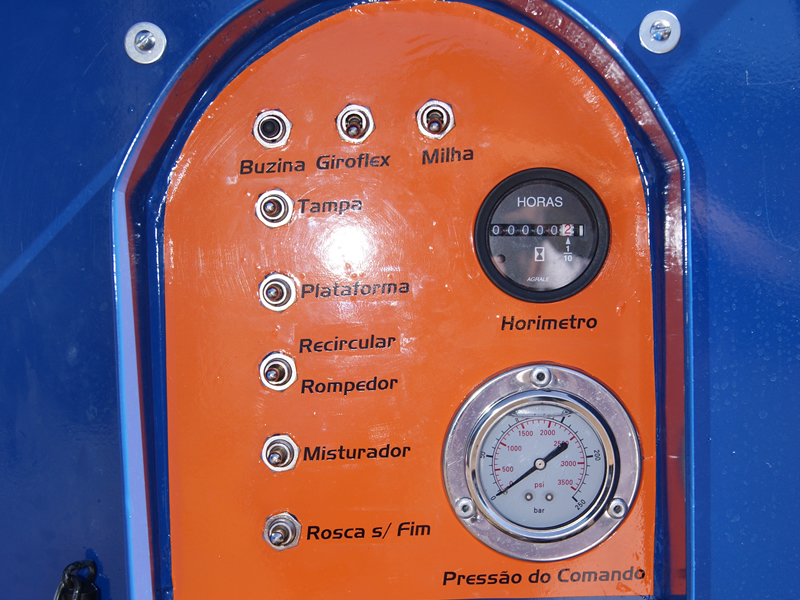 CAPACIDADE3m³ ou 5m³ de massa. SILOEm “V” (tipo moega). ESTRUTURAChapas de aço SAE 1020 (4,75 mm) com camisa interna para fluido térmico, com isolamento térmico por mantas de lã de vidro com espessura de 50mm. REVESTIMENTO EXTERNOChapas de aço inoxidável 304. COMPORTASDuas unidades individuais com acionamento hidráulico para carregamento de massa. SISTEMAS DE AQUECIMENTO SISTEMA DE HOMEGENEIZAÇÃOPor circulação de fluído térmico. Através de dois eixos equipados com aletas inversoras acionados por motor hidráulico independente (quebra túnel). TRANSPORTE DE MASSAPor rosca sem fim e calha distribuidora externa direcional manual. SISTEMA HIDRÁULICOBomba de engrenagens acionadas por tomada de força do veículo. Reservatório com 210 litros de óleo hidráulico. TROCADOR DE CALORConjunto montado para arrefecimento do sistema hidráulico. CONJUNTO DE COMANDOPor eletroválvulas individuais acopladas ao bloco volumétrico. PLATAFORMASDuas plataformas independentes para transporte dos acessórios de operação equipadas com travas de segurança para transporte. AQUECIMENTO E CIRCULAÇÃO DE FLUÍDO TÉRMICOExclusivo e inovador sistema alimentado por GNV com acendimento automático do queimador (maçarico). EXAUSTÃOPor tubulação (chaminé) externa opcional. AQUECIMENTO E CIRCULAÇÃO DE FLUÍDO TÉRMICOPor gás GLP com sistema de botijão de gás tipo P45. PAINEL DE COMANDOCom dupla vedação equipado com chaves independentes de dupla função: aciona de abertura das comportas, das plataformas traseiras, descarga de massa, dos eixos homogeneizados e sistema de iluminação de advertência. COMPONENTES DO EQUIPAMENTO .................................................................................................................. |