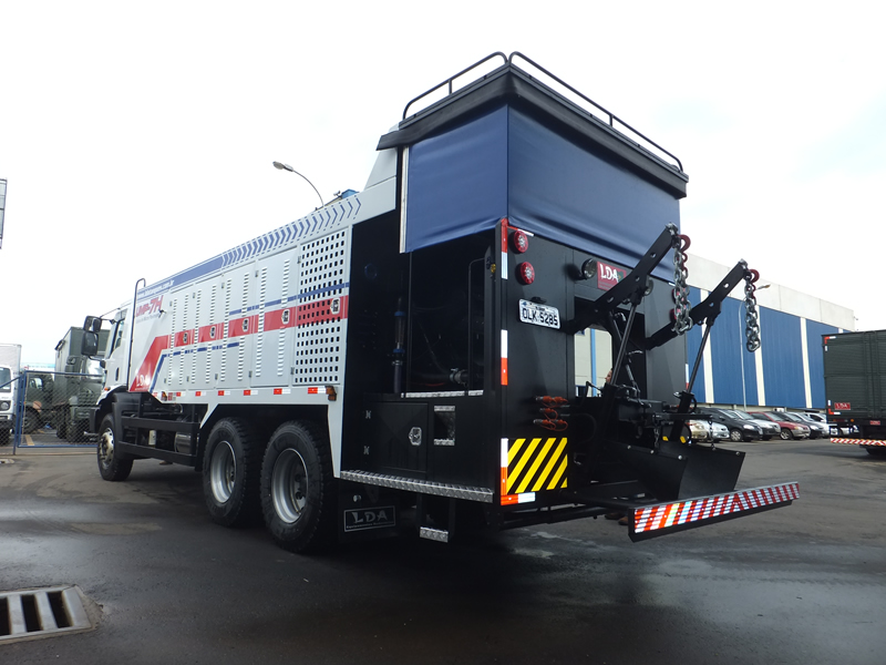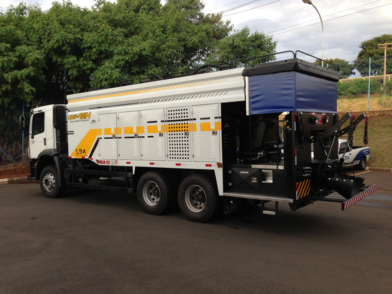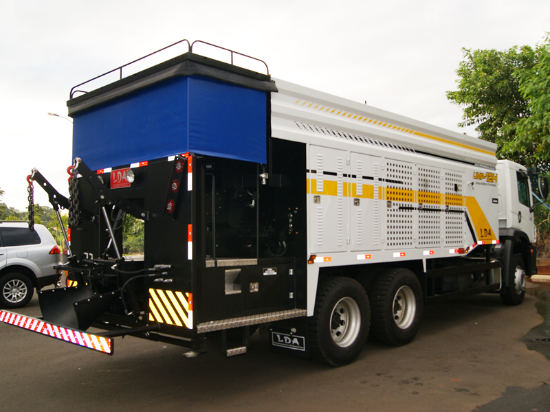 SILOEntre 9 m³ e 18 m³. Construído em chapas aço SAE 1020 (4,75mm). Formato “V” tipo Moega. Saída com regulagem manual escalonada. Depósito para filler bipartido - Compartimento de armazenagem de cimento ou cal para 300Kg - Compartimento de armazenagem de fibras para até 150 Kg. CAPACIDADE DE VAZÃOVazão e mistura aproximada de 60 a 120 t/h. RESEVATÓRIO DE ÁGUA E EMULSÃODois tanques metálicos. Primeiro com capacidade de 3,400 L. de emulsão asfáltica. Segundo para 3.000 L de água. LIMPEZATubulação e emulsão através de óleo diesel, lavagem do equipamento através de bomba d'água de alta pressão do tipo “pistão”. MISTURADORMisturador do tipo Pug-mil contínuo. Construído em chapas aço SAE 1020 (4,75mm). Largura mínima de aplicação de 3.200 mm e máxima de 4.100 mm. Colado por sistema hidráulico. CONTROLE DE ESPESSURAControle de espessura manual com borracha perfilada e régua de acabamento com regulagem de altura e grau do box. ALIMENTAÇÃOBomba d'água de 1 1/2” do tipo centrífuga, com vazão de 35m³/hora com sistema de dosagem ajustável, acionada por motor hidráulico. Bomba para emulsão do tipo nodular, com vazão de até 50m³/hora, acionada por motor hidráulico independente. SISTEMA DE FORÇAMotor estacionário marca “Cummins” modelo 6 BT de 6 cilindros em linhas completo. Potência de 152 CV turbo, sistema de injeção direta, movido a óleo diesel, refrigeração a água. SISTEMA ELÉTRICO12 Volts, alimentado pelo motor estacionário, com fiação e chaves do tipo industrial. ACIONAMENTO HIDRÁULICODuas bombas de pistão de fluxo variável ligadas ao motor estacionário do equipamento. SISTEMA DE DISTRIBUIÇÃOExecutada por helicóides angulares do tipo sem fim, extensíveis hidraulicamente, braços de sustentação (levante) com acionamentos hidráulicos independentes. COMPONENTES DO EQUIPAMENTO .................................................................................................................. |